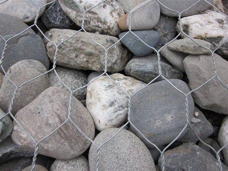 石笼网由高抗腐蚀、高强度、具有延展性的低碳钢丝或者包覆PVC的以上钢丝使用机械编织而成,使用该网制作而成的箱型结构就是石笼网箱。根据ASTM和EN标准,所使用的低碳钢丝直径根据工程设计要求而不同。一般介于2.0-4.0mm之间,石笼网钢丝的抗拉强度不少于38kg/m2,金属镀层重量一般高于245g/m2,石笼网片的边缘线直径一般要大于网线直径。其双线绞合部分的长度不得小于50mm.以保证绞合部分钢丝的金属镀层和PVC镀层不受破坏。