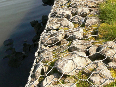高尔凡石笼网又称锌铝合金石笼网,是用新型的防腐材料加工编织而成。高尔凡石笼网具有较高的抗腐蚀性能,其产品的抗腐蚀性能约是普通石笼网的2-3倍。无论在户外、在潮湿环境、或在海洋气候等恶劣环境,该高尔凡的抗腐蚀性能均比普通镀锌、电镀锌优越。该高尔凡石笼网的延展性及可变形能力极强,甚至超出了它所保护的钢基。能经得起在强力变形工艺条件下缠绕、弯曲的考验,而不必担心锌层的龟裂与脱落。