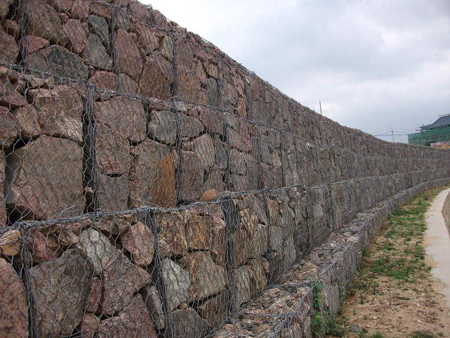 石笼挡土墙的构件是在网箱内部填充大小比例相当的石块,这样就有一定的孔隙率,由于石块之间的间隙,可以排出砌体后面的土壤和护坡下面土层的水,这样就降低了水位,减少墙体后和坡下的地表水压力,水及时排出降低了挡土墙被破坏的几率,这样挡土墙的寿命会大大的延长。同时墙体网箱是铁丝网制作的笼子,能够有一定的变形,况且,石块与石块之间,也可以滑动,所以挡土墙的变形能力也能够缓冲突发的外力。