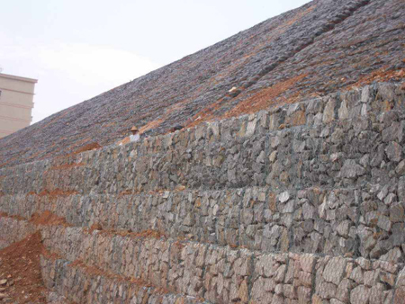 石笼挡土墙是石笼网笼子层叠堆砌的挡土建筑物。
