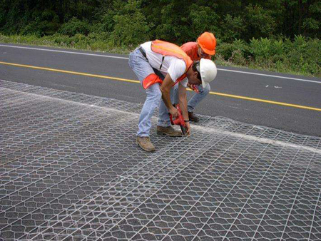 1、加筋格宾网是在垂直或平行于编织方向,参加同一材料与网丝钢网片。加固网片的抗拉强度比普通网片、加筋丝直径一般不少于边丝直径。加筋格宾网具有良好的对地基适应性、良好的抗震性能和抗往复动荷载作用性能、基本不存在蠕变问题。安装到路基上,尤其当基础张应力很高的情况下,它能吸收并从根本上减弱有裂缝或交通而产生的张应力缝值。